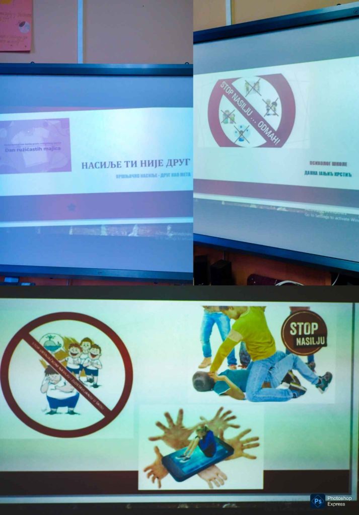 Под слоганом „НАСИЉЕ ТИ НИЈЕ ДРУГ”, ученици VII/4 и VII/5, имали су прилику да са њом и са својим разредним старешинама разговарају о овом значајном проблему који све више потреса школе и утиче на добру климу одељења нарочито старијих разреда.