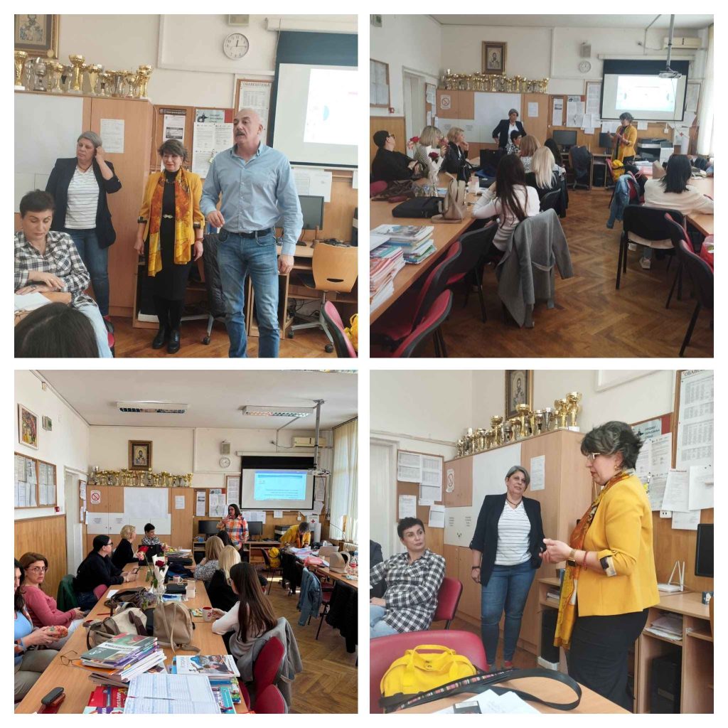Љиљана Пањковић и Дарко Станојковић, представници Ресурног центра ,,Бранко Пешић“ и ментори Професионалне заједнице учења и Јелена Радојковић и Наташа Узуновић, координатори Професионалне заједнице учења, одржали су у петак, 13.марта 2026.године, радионицу под називом ,,Дидактички материјали и тематски интегрисани часови“. Учесници ове радионице били су учитељи, наставници и психолог ОШ,,Ратко Вукићевић“, као и колеге из Гимназије ,,9.мај“ и Економске школе Ниш. Радионица је била занимљива, инспиративна, динамична и едукативна, а колеге су активно и врло креативно учествовале у раду, усвајале нова сазнања, али и делили своја искуства и знања.