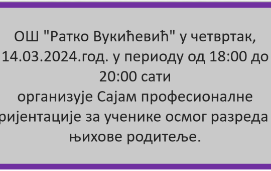 Сајам професионалне оријентације одржан је у Основној школи ,,Ратко Вукићевић“, у четвртак 14.3.2024.године. Овај, сада већ традиционални скуп, окупио је...