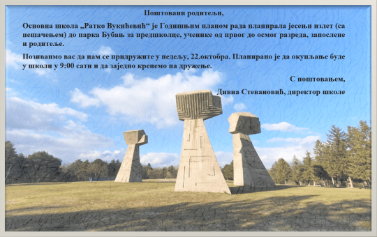 Ученици предшколских припремних група, заједно са својим васпитачицама, били су у среду, 25.10.2023.године, на једнодневном излету у Јагодини. Посетили су...