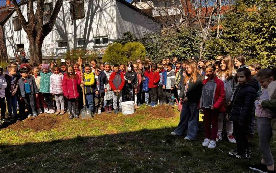 У четвртак, 30.3.2023. ученици првог разреда засадили су две саднице белог бора у школском дворишту у оквиру пројекта: “Засади дрво...